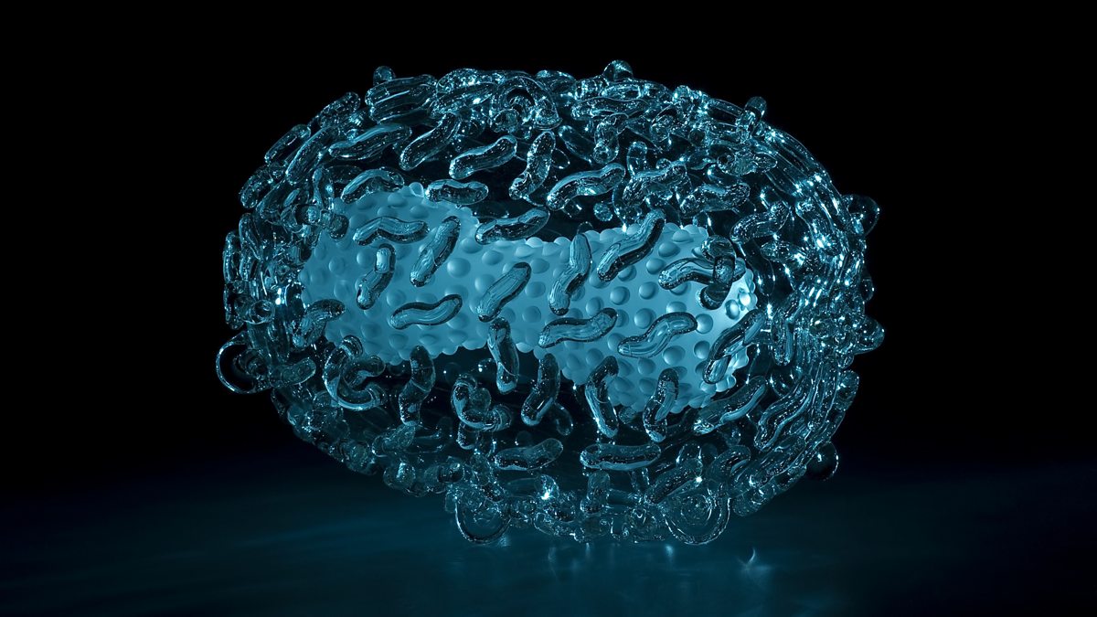 Image: ‘Glass Microbiology’ sculpture of Ebola Virus by Luke Jerram