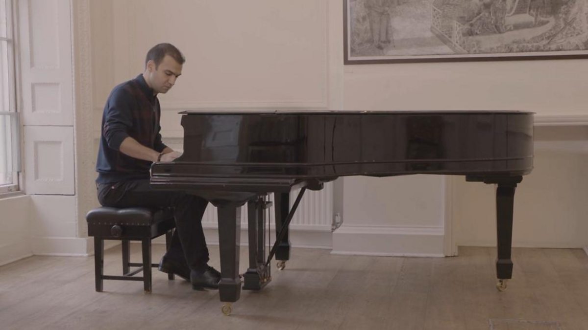 (Picture: Farid Gasanov playing his piano. Credit: Farid Gasanov.)
