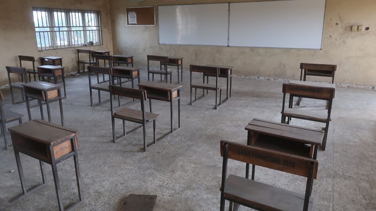 - students chairs and desks are arranged in order to maintain social distancing at Agidingbi Senior Grammar School, Ikeja, Lagos, Nigeria. Photo by Adekunle Ajayi via Getty Images).