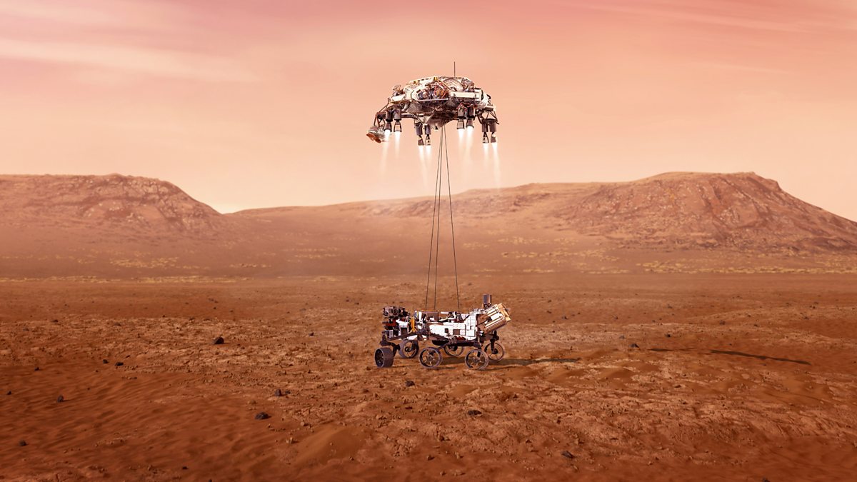 (Image: An illustration of NASA’s Perseverance rover landing on Mars.