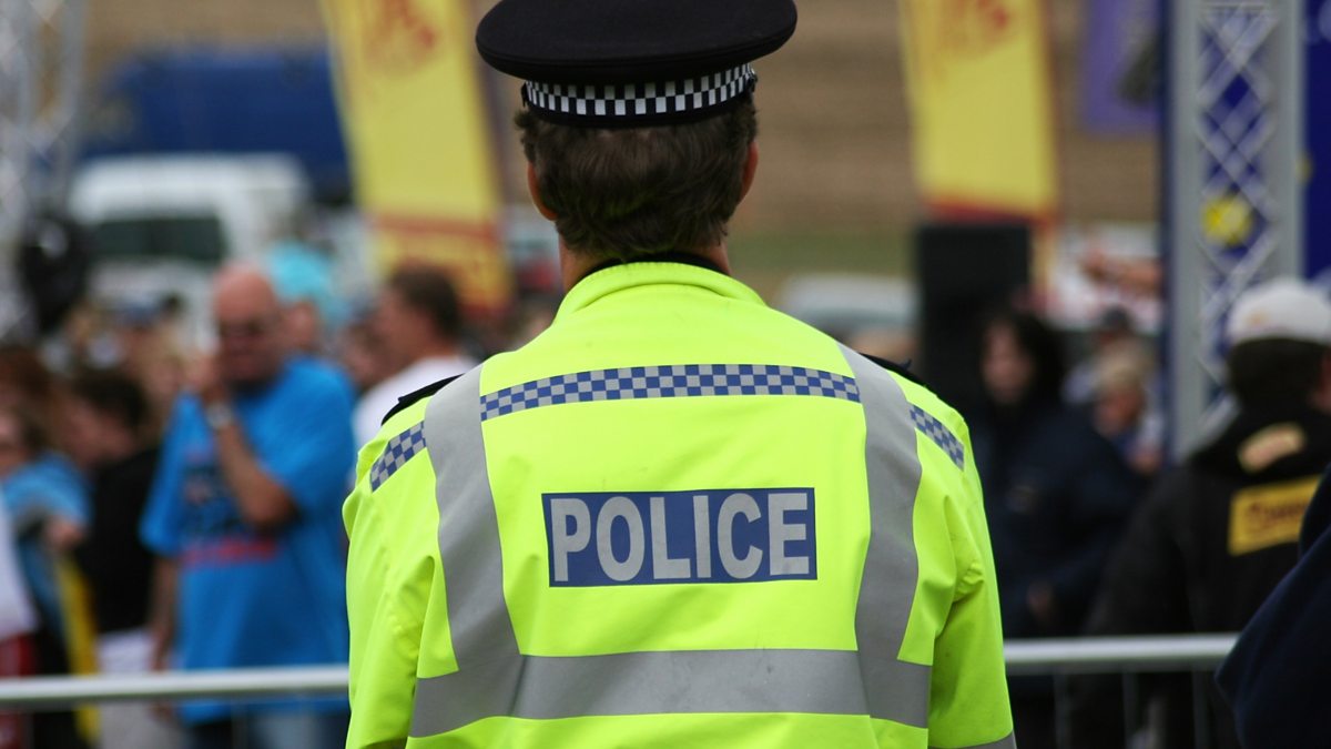 (Image: Stock photo of a British police officer standing in front of a crowd. Credit: Getty Images).