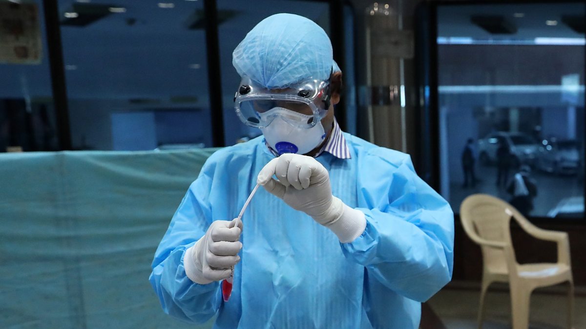 (Image: A health worker processes a sample for a Covid test in New Delhi, India. Credit: EPA/ RAJAT GUPTA).
