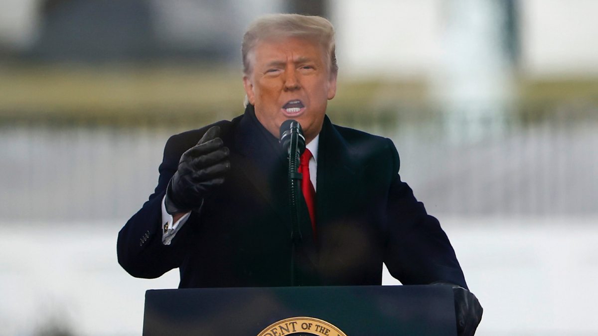 (Image: Donald Trump rallies supporters to march on the US Capitol to protest against the certification of the election result. Credit: Getty Images).