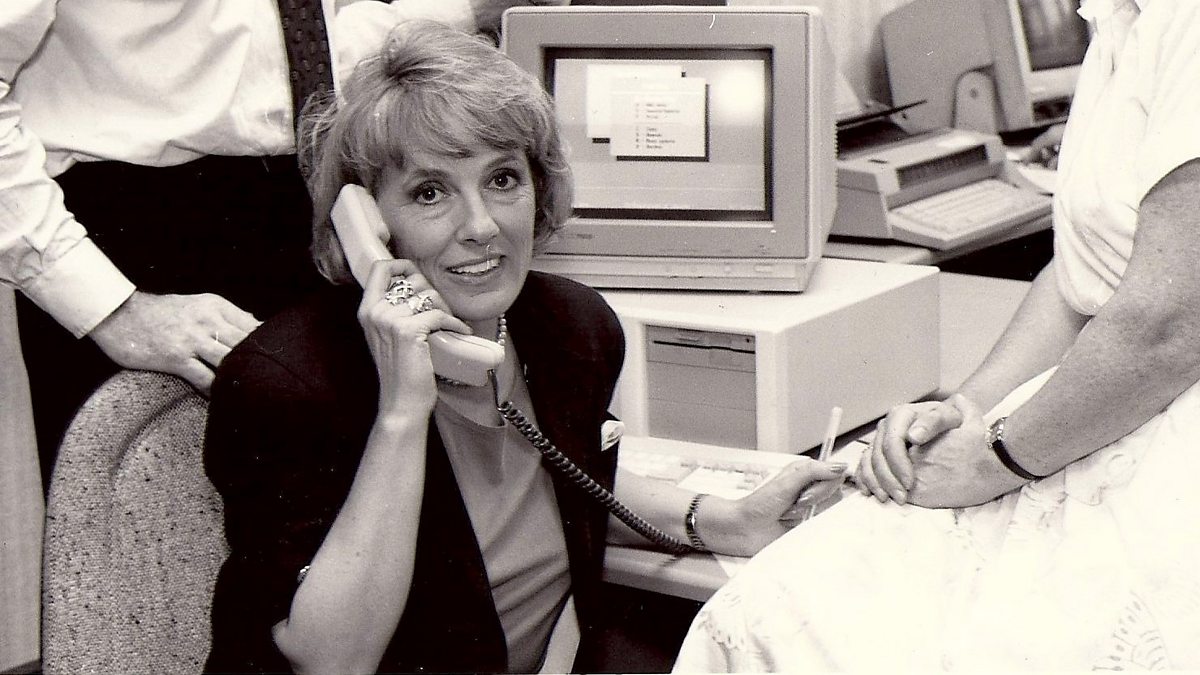 Photo: Esther Rantzen on the day Childline was launched in 1986. Credit: Childline.
