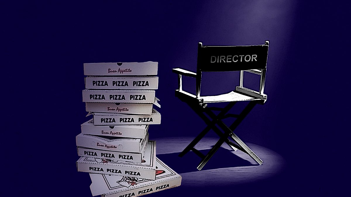 (Picture: A stack of pizza boxes next to a film director's chair. Credit: Getty Images/BBC)