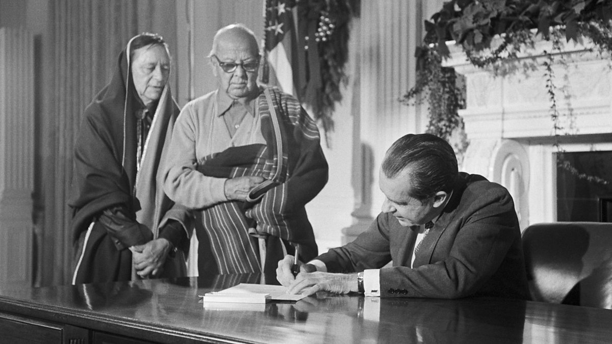 Republican Richard Nixon became the first US president to give land back to Native Americans with the return of the sacred Blue Lake to the Taos Pueblo people of New Mexico