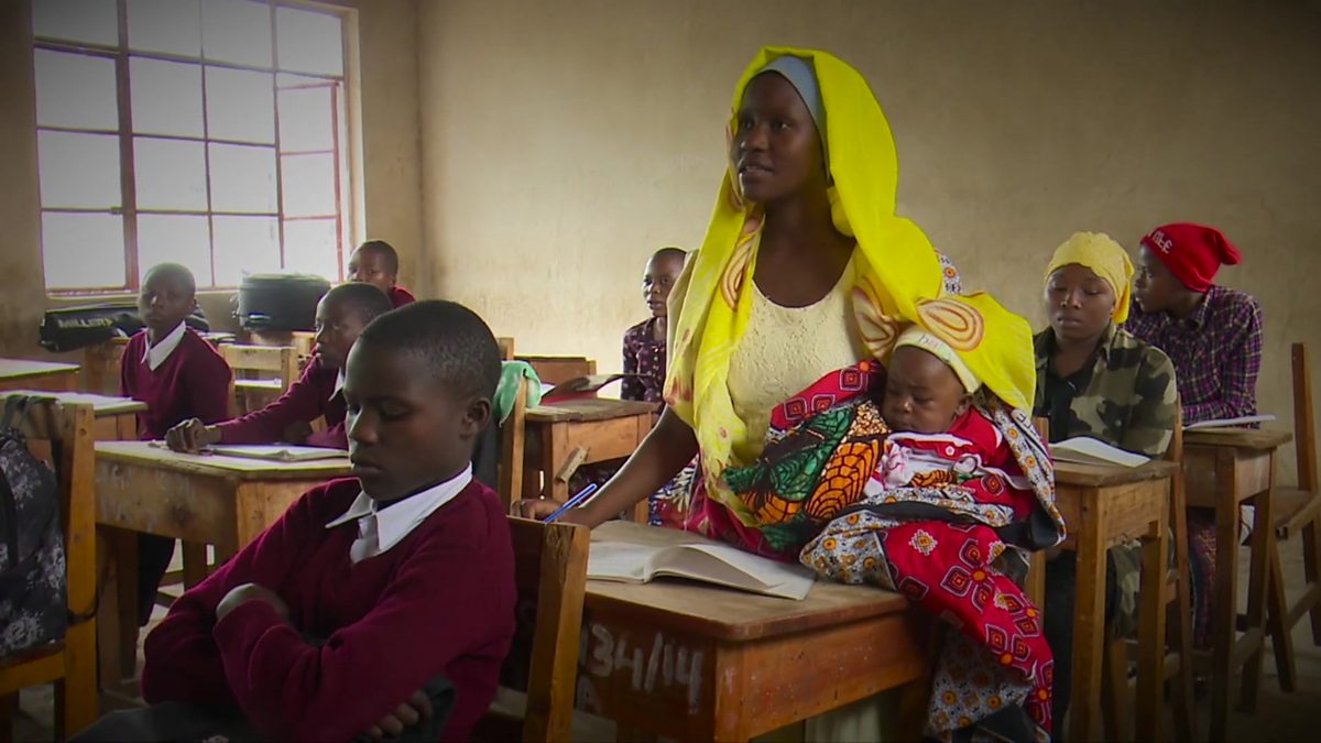 (Photo: Teenage mother in a Tanzanian school. Credit: BBC)