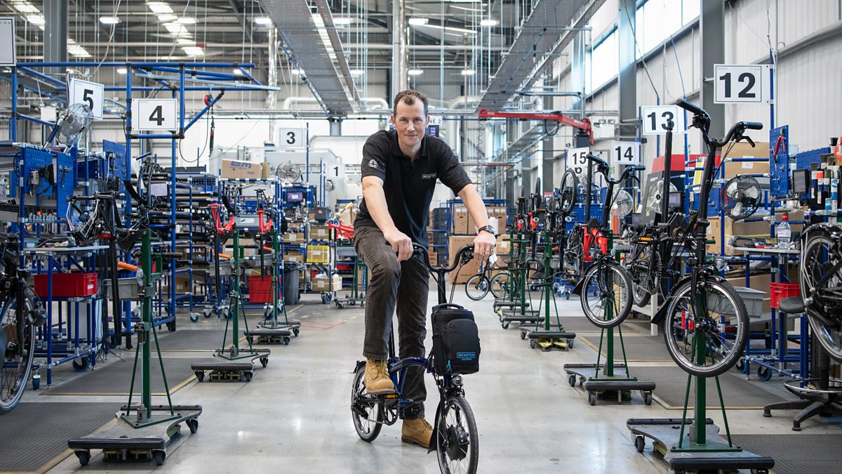 Photo: Will Butler-Adams on a Brompton bike at his London factory. Credit: Brompton.