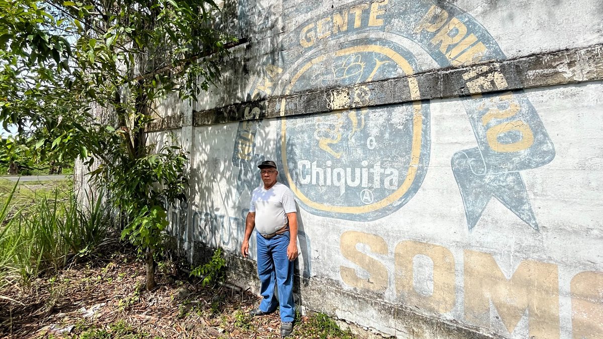 Image: Mr Coba at the banana plantation where he used to work; Credit: Grace Livingstone
