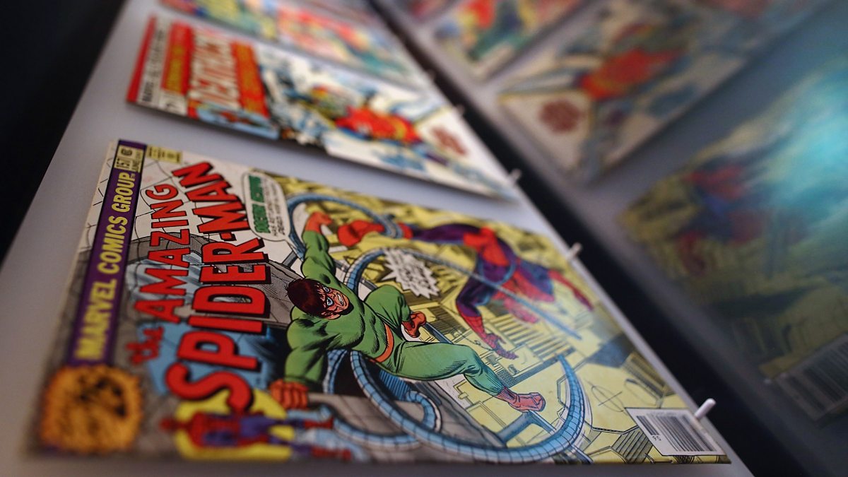 Picture Description: Comics at Wellcome Trust Superhero exhibition, Picture Credit: Getty Images