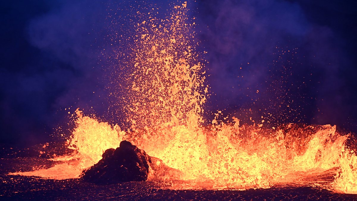 (Image: Lava spews from the volcano in Fagradalsfjall. Credit: Getty Images)
