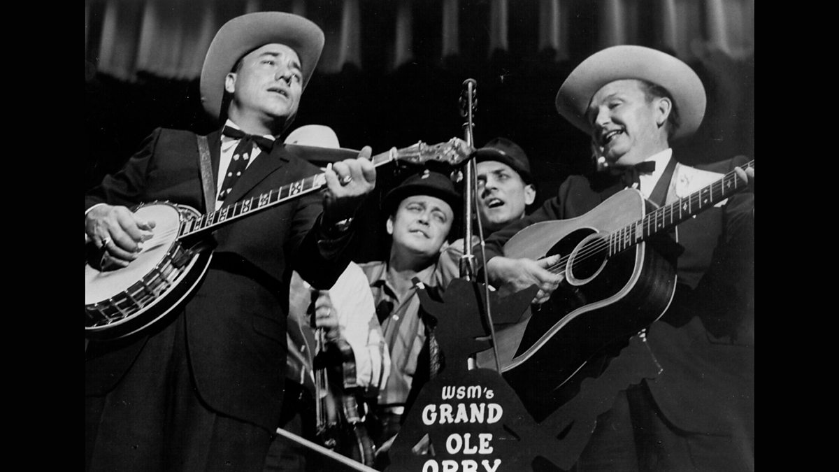(Photo: Lester Flatt (right) and Earl Scruggs (left) perform with The Foggy Mountain Boys at the Grand Ole Opry circa 1960. Credit: Michael Ochs Archives/Getty Images)