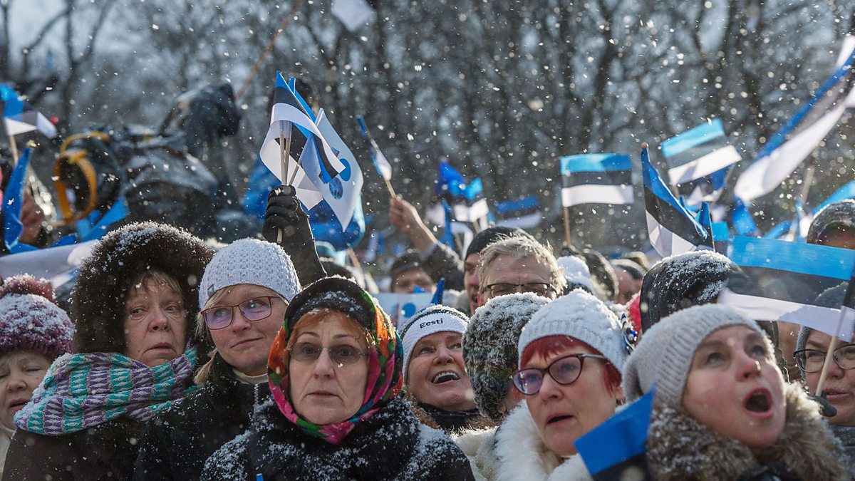 (Photo: People wave flags in Tallin to celebrate 100 years since Estonia first declared independence in 1918. Credit: Raigo Pajula/AFP/Getty Images)
