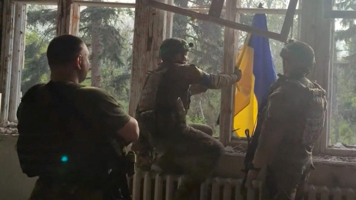 (Photo: Ukrainian soldiers place a Ukrainian flag at a building, during an operation that claims to liberate the first village amid a counter-offensive, in a location given as Blahodatne, Donetsk Region, Ukraine,11 June, 2023. Credit: Reuters)