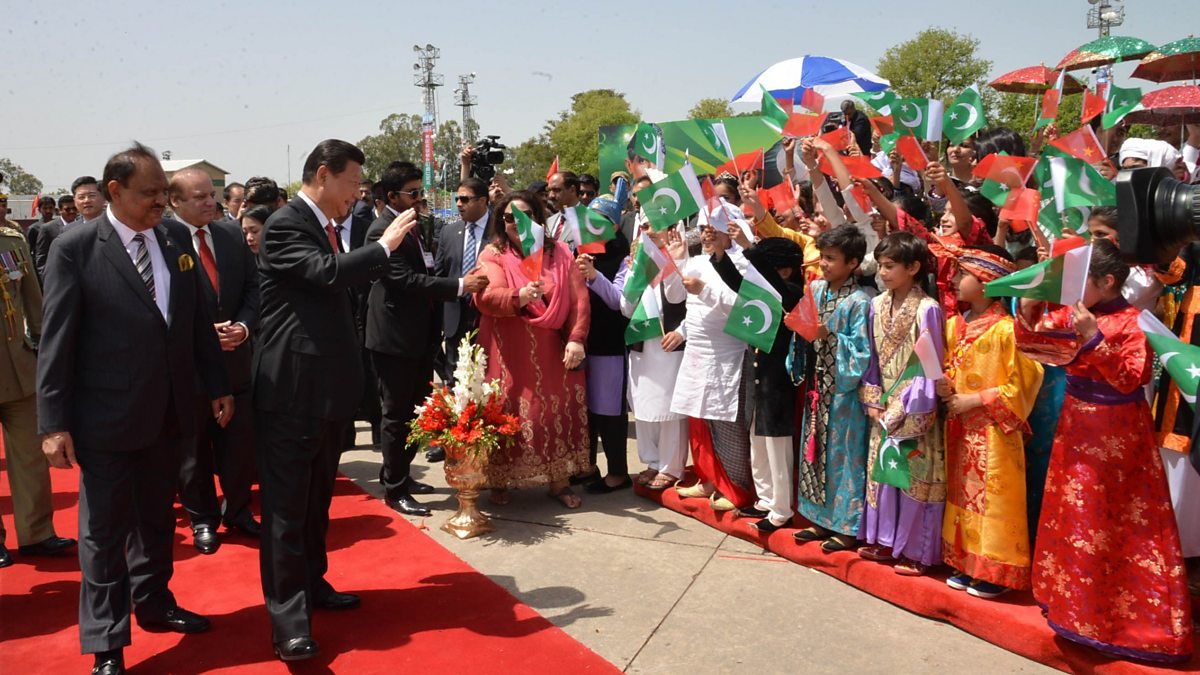 (Photo: Chinese President Xi Jinping waves to children upon arrival at Islamabad airport in Islamabad, 20 April, 2015. Credit: Pakistan Presidency Press Information Department /Getty Images)
