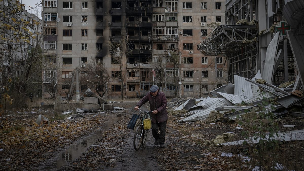 (Photo: A resident is seen after shelling in the Ukrainian frontline city of Avdiivka on October 17, 2023. Credit: Ozge Elif Kizil/Anadolu via Getty Images)