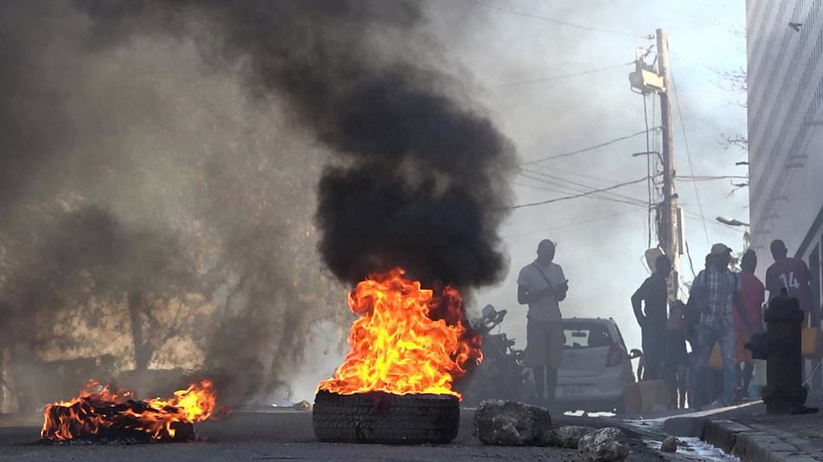 (Photo: Tyres on fire near the main prison of Port-au-Prince, Haiti, on March 3, 2024. Credit: Luckenson Jean/AFPTV/AFP)