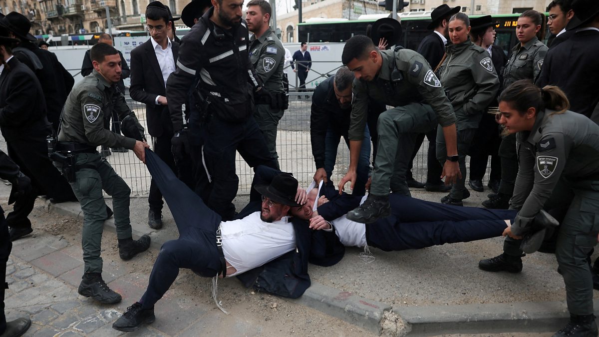The war in Gaza is forcing Israeli society to confront a long-standing conflict over who serves in the army. Ultra-Orthodox Jews enjoy an exemption, but many Israelis now say this should end. Both sides took to the streets to protest, while the Israeli Supreme Court hears a case related to this matter, as BBC Arabic’s Michael Shuval reports.