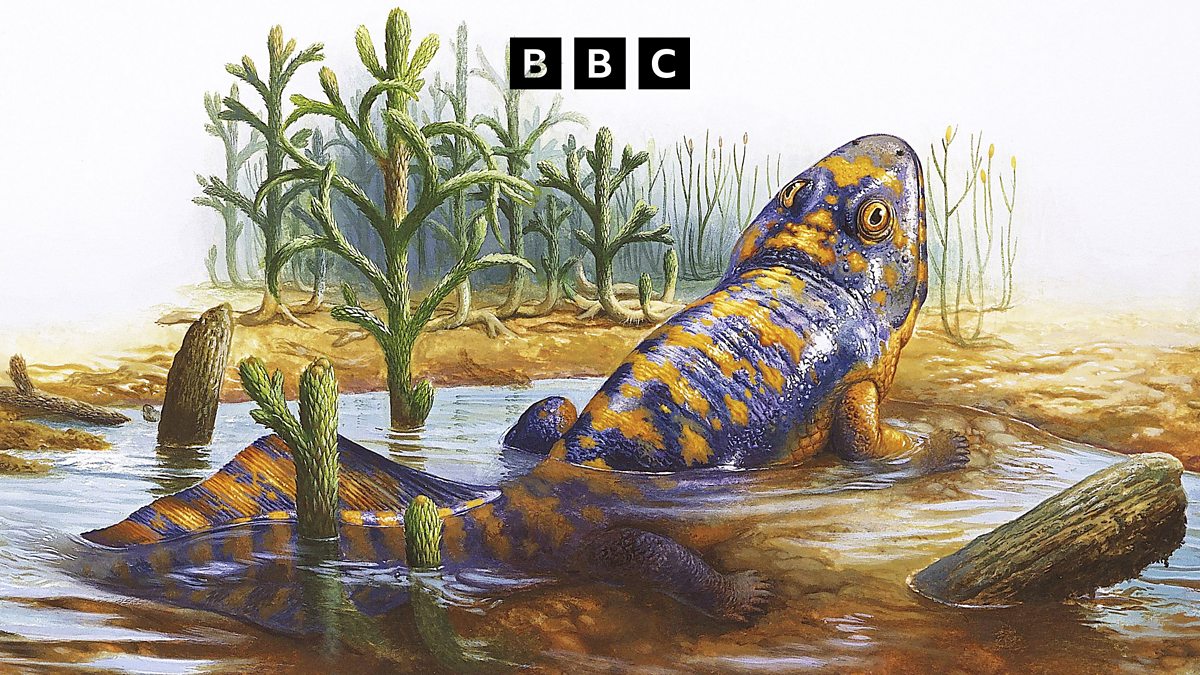 (Picture: Artwork of a primitive tetrapod. Credit: Christian Jegou/Science Photo Library)