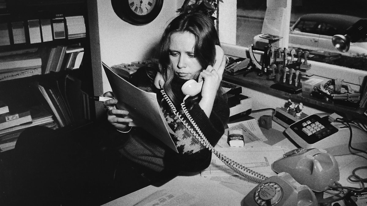 (Photo: A teenage Vera Brandes at her desk answering two phones at once. Credit: Brigitta Singer)