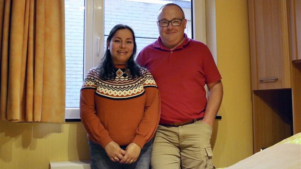 (Photo: CrowdScience listeners David and Tatiana standing in front of a window in their house)