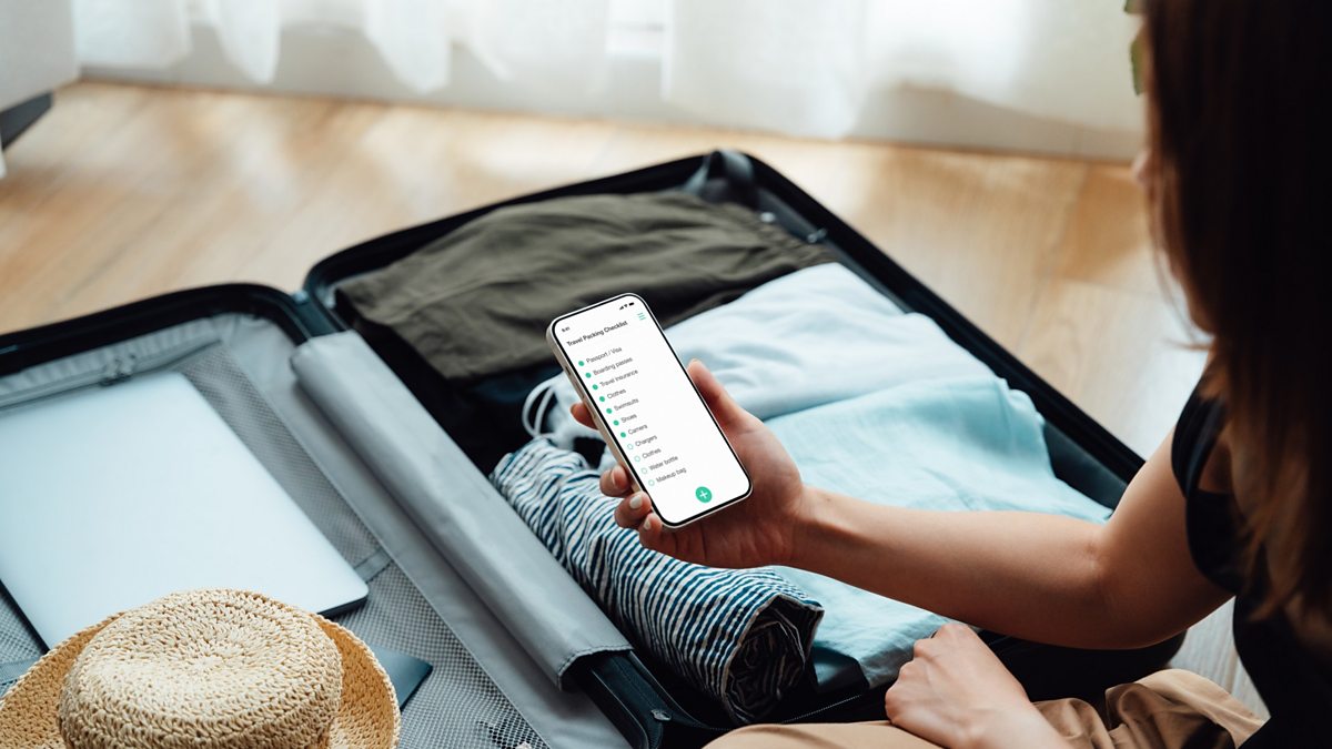(Picture: Business woman with an open suitcase, preparing for a trip, while looking at her phone. Credit: Getty Images)