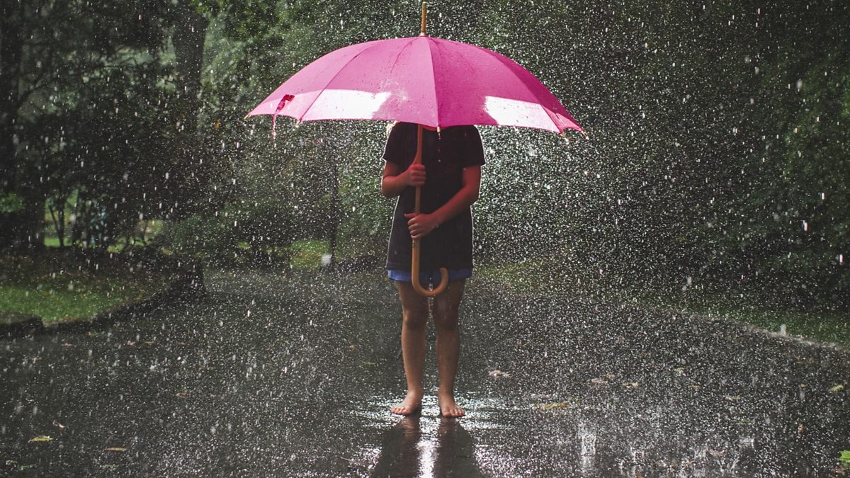 (Image: Girl carrying umbrella while standing on road against trees during rainfall. Credit: Cavan Images/Getty Images)