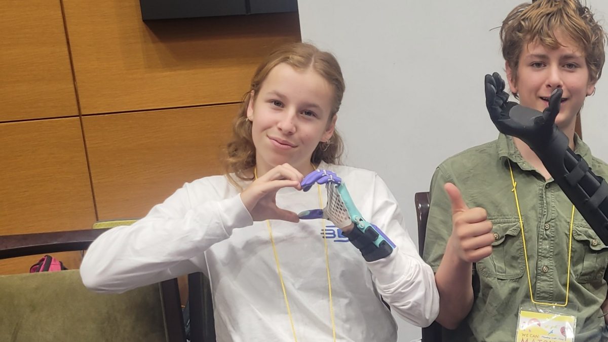 Lois, 14, and her classmates used a 3D printer to create a prosthetic hand for her as part of a school project. Now they want to help others who need artificial limbs.