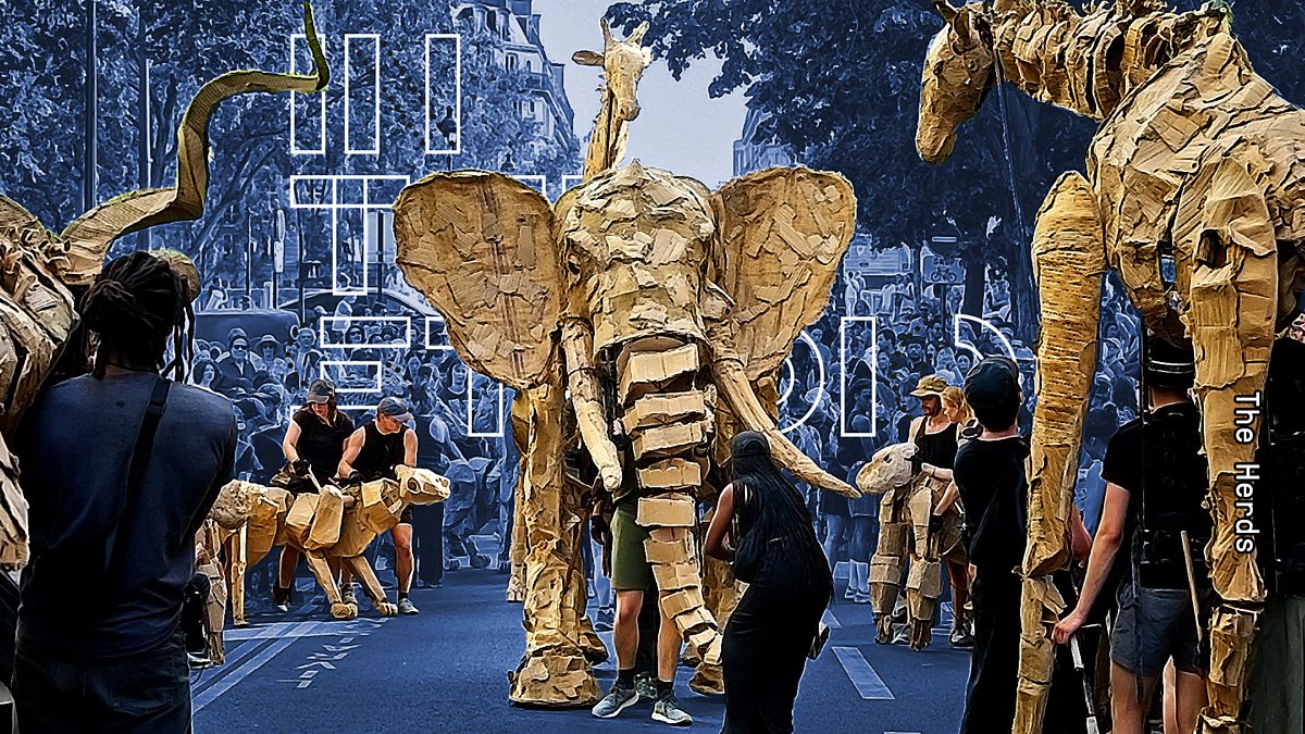 A vast herd of life-size puppet animals travel from the Congo Basin to the Arctic Circle, fleeing the effects of climate change.