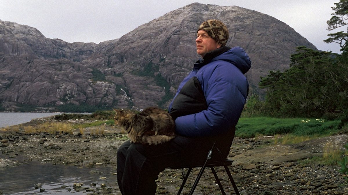 Decades later, and after losing his lower right leg in an accident, Bob decided to spend an entire year alone, on the isolated coast of Patagonia in southern Chile. He ended up on a tiny island where he built his own cabin, and spent his time meditating, fishing and, at one point, pulling his own tooth. But he wasn’t entirely alone: he had taken a cat with him which became his close companion and, at times, his nemesis.
