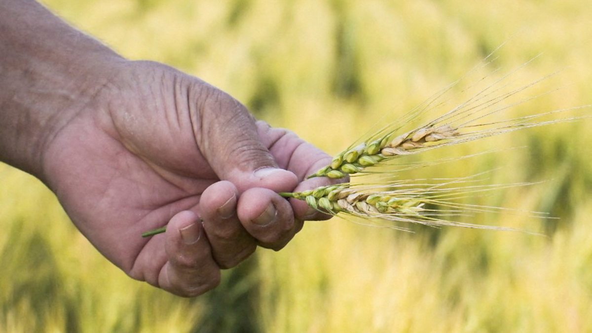 (Photo: A hand holding an ear of wheat. Credit: Heather Schlitz/Reuters)