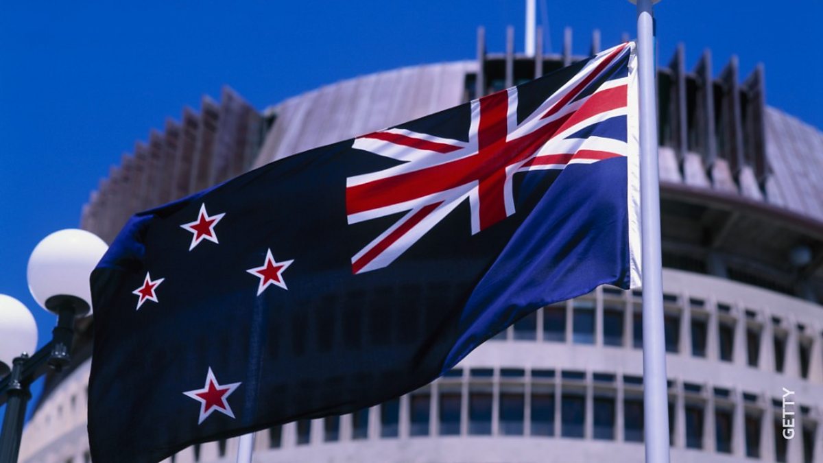 (Photo: New Zealand Flag and the Beehive Parliament Building