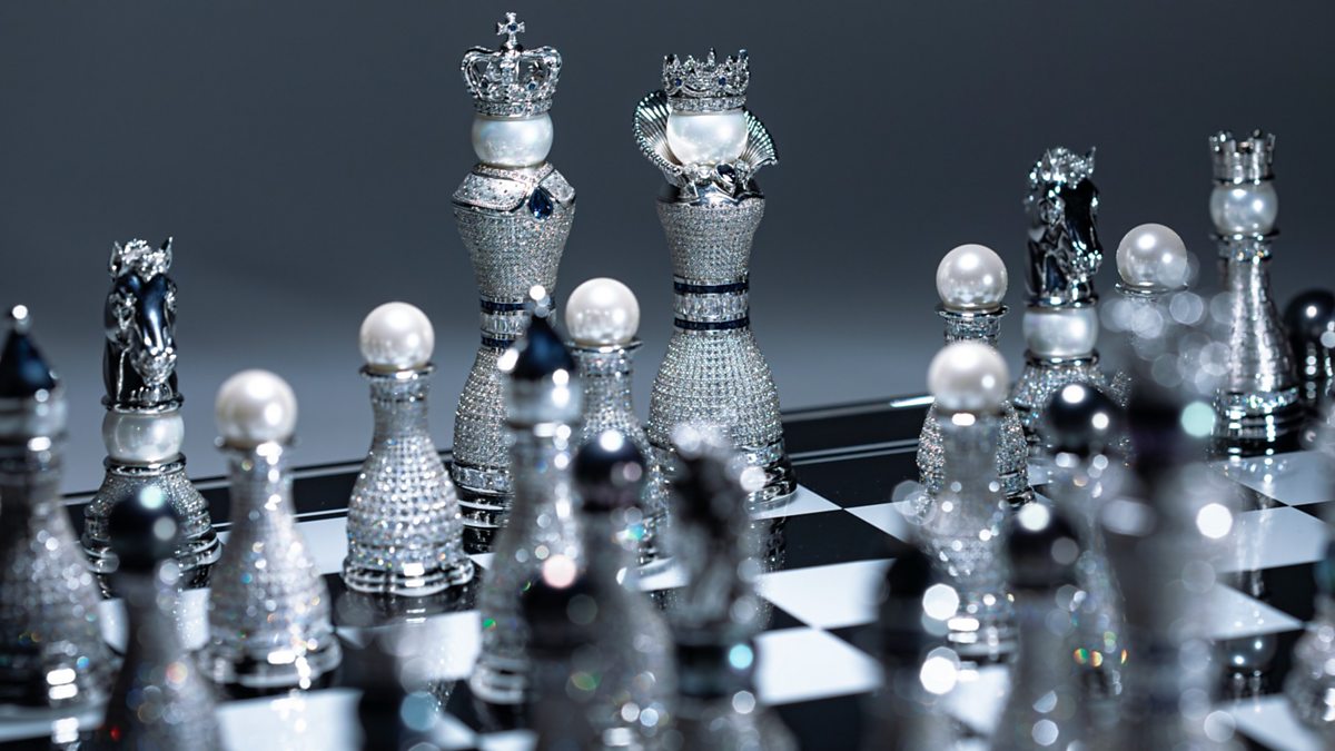 Photo: The Pearl Royale chess set which is made of diamonds, blue sapphires and South Sea pearls. Credit: Aaron McPolin/Colin Burn)