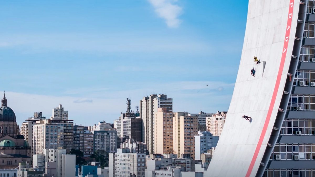 PHOTO: Sandro Dias performs during Red Bull Building Drop Project in Porto Alegre, Brazil on September 07, 2025. (CREDIT: Marcelo Maragni/Red Bull Content Pool)