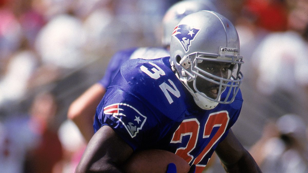 (Photo: Running Back Leonard Russell #32 of the New England Patriots runs the ball against the Phoenix Cardinals at Sun Devil Stadium, 10 October,1993 in Tempe, Arizona. The Patriots won 23-21. (Bernstein Associates/Getty Images)