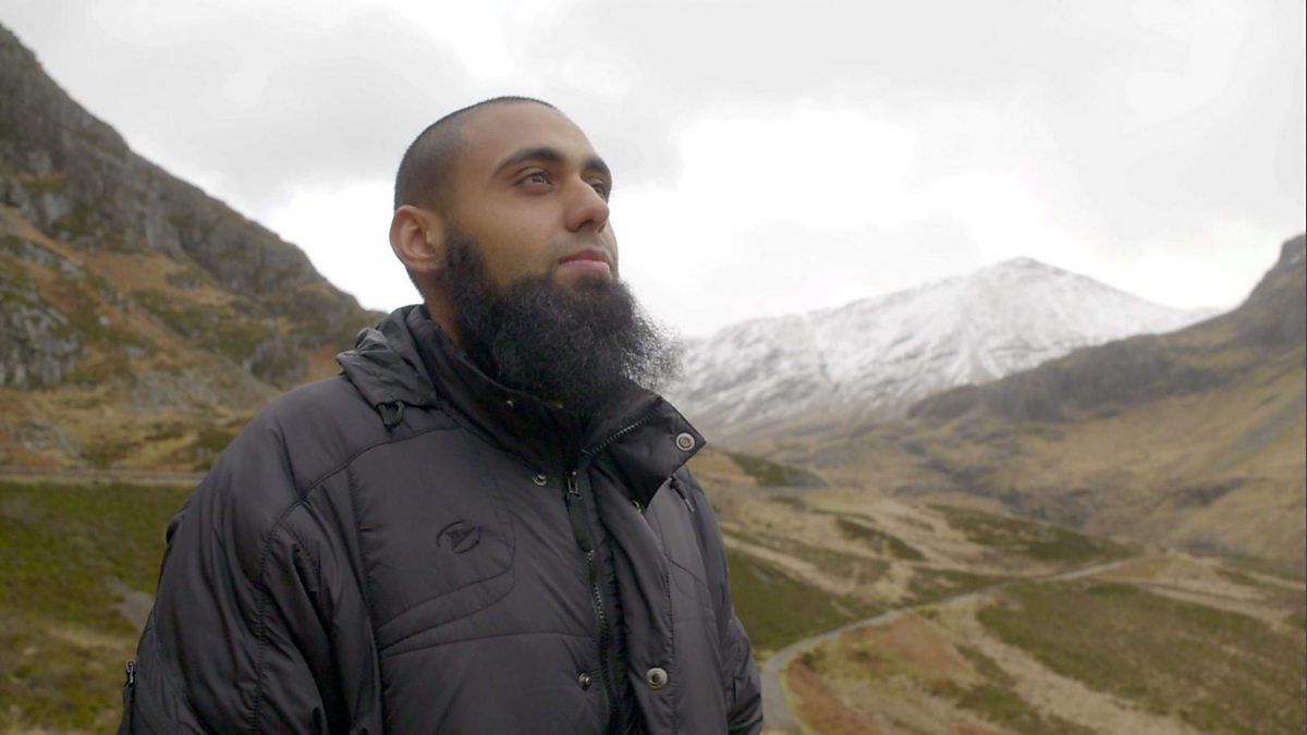 (Photo: Shadab Iftikhar standing in front of a mountainous scenery)