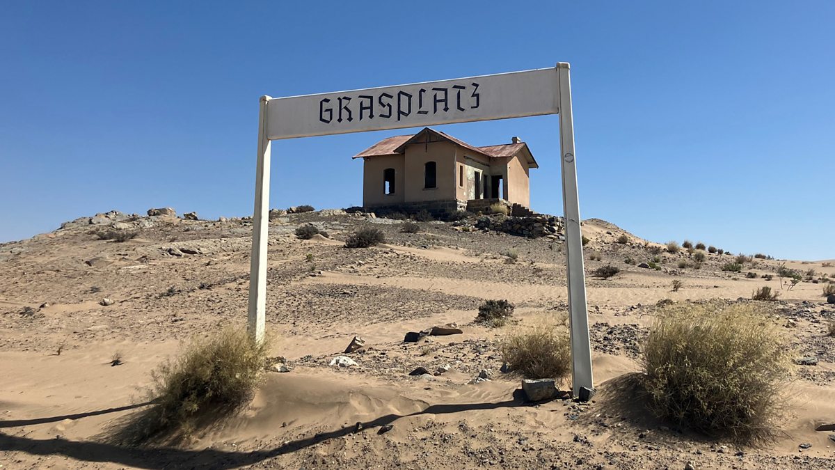 Image: A sign outside the Namibian town of Grasplatz (Credit: Johannes Dell)
