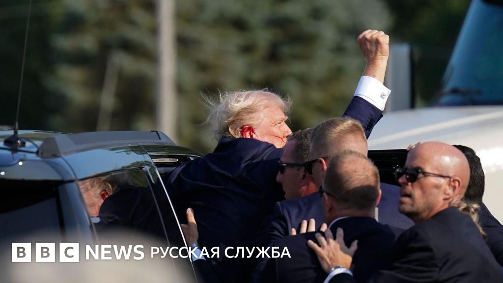 На видео с митинга слышны несколько выстрелов, после которых Трамп трогает ухо и секунду спустя пригибается к земле, к нему бросаются сотрудники охраны - Секретной службы. Спустя минуту бывшего президента, с поднятой рукой, сжатой в кулак, увели со сцены.