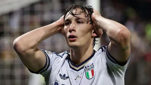 Игрок сборной Италии Пио Эспозито хватается руками за голову