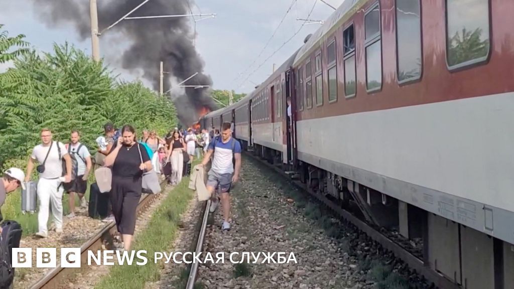 Местные СМИ опубликовали видеозапись с пассажирами, несущими багаж вдоль частично горящего поезда, от которого поднимался густой серый дым.