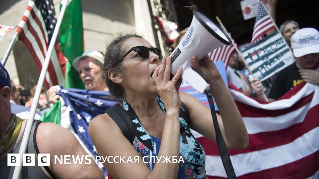 На этой неделе, однако, часть последних выкрикивает тот же лозунг на периферии предвыборного съезда американских демократов, который начался в понедельник в Филадельфии, известной в Америке как "Город братской любви".