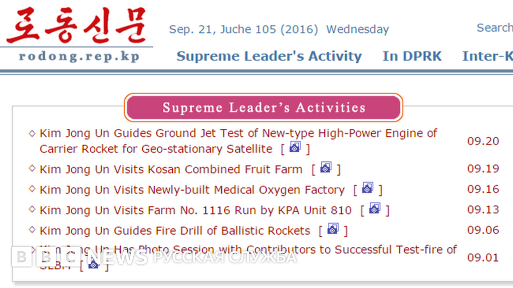 Например, есть материал о его визите на фруктовую ферму, где он раздавал указания - вероятно, о фруктовом фермерстве, а также его речь перед членами "Союза молодежи кимирсенизма и кимчениризма".