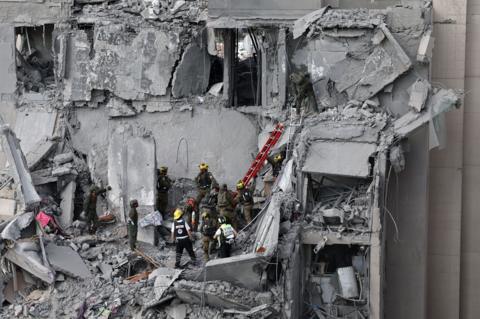 Подпись к фото, Сотрудники экстренных служб работают на месте ракетного удара по Ирану в Беэр-Шеве