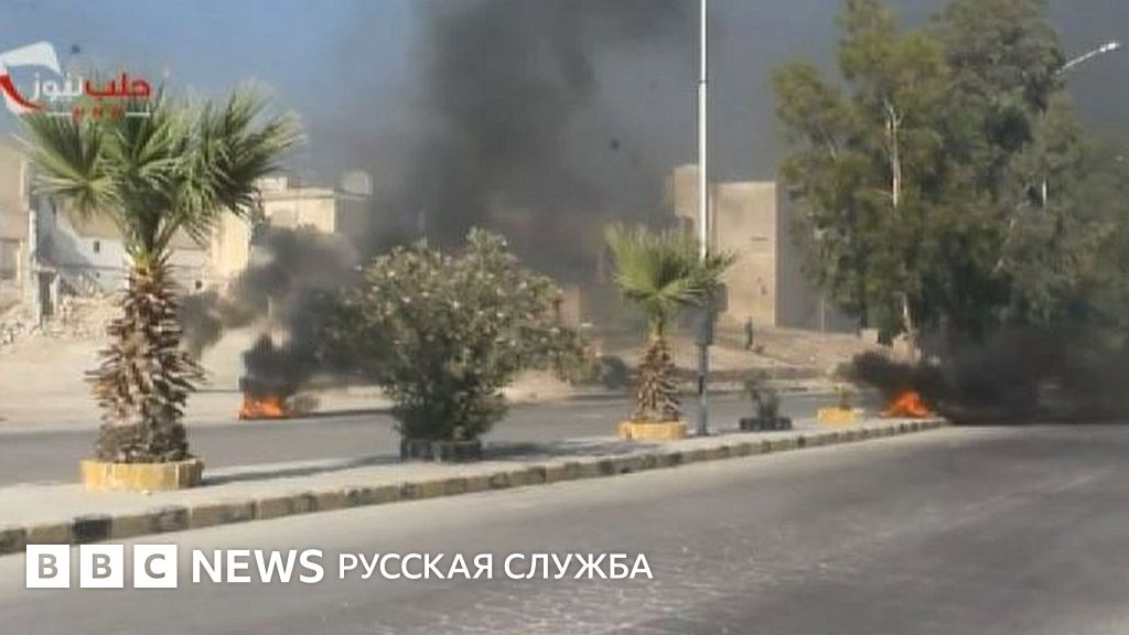 На видео, размещенном в соцсетях базирующимся в сирийском Алеппо оппозиционным новостным агентством Halab News Network, жители города жгут автопокрышки на улицах.