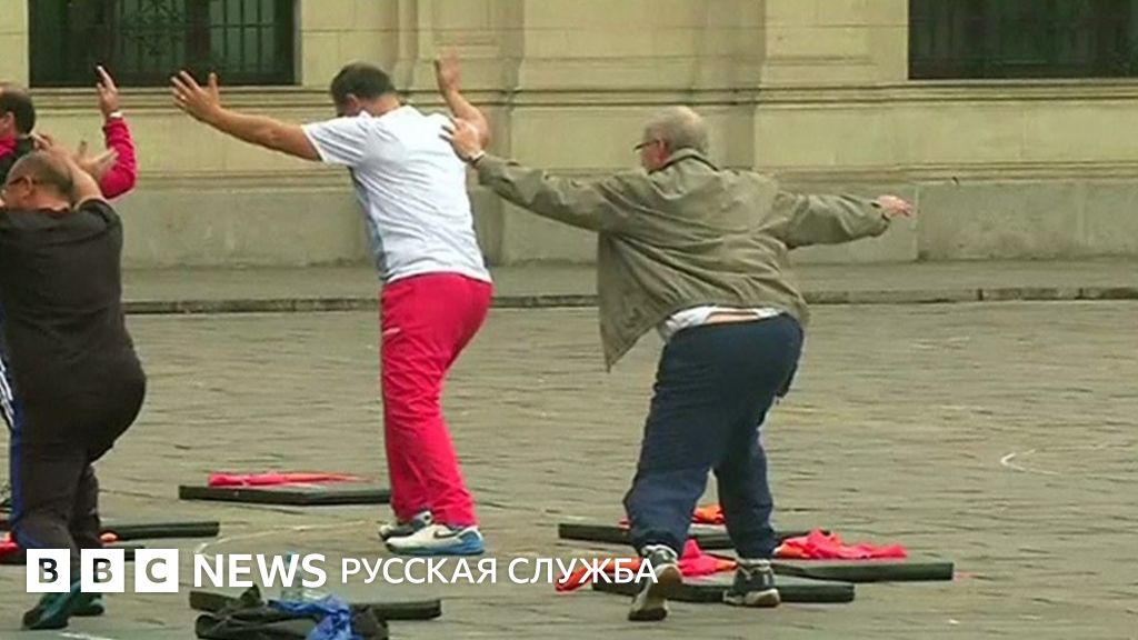 77-летний президент Перу Педро Пабло Кучински провел зарядку для министров у Дворца правительтва.