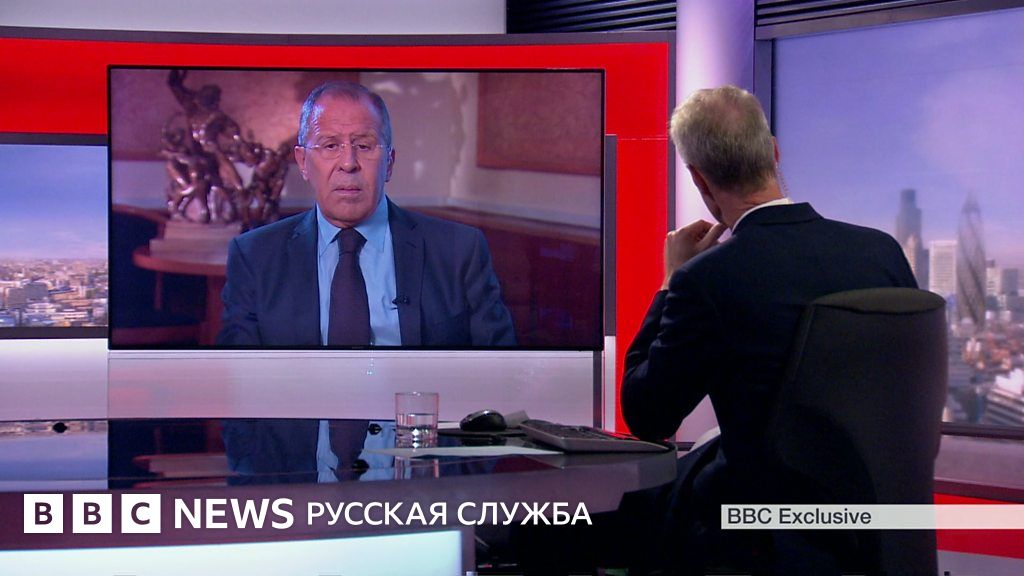 Министр иностранных дел России Сергей Лавров дал интервью в прямом эфире канала BBC World и ответил на вопросы ведущего Стивена Сакура о ситуации в Сирии, в том числе о гражданских жертвах российских бомбардировок.