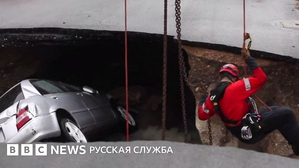 В американском городе Сан Антонио автомобиль с женщиной-полицейским провалился в яму, образовавшуюся на дороге из-за прорыва канализационной трубы.