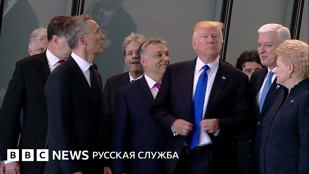 На саммите НАТО в Брюсселе президент США Дональд Трамп оттолкнул премьер-министра Черногории, чтобы выйти вперед.