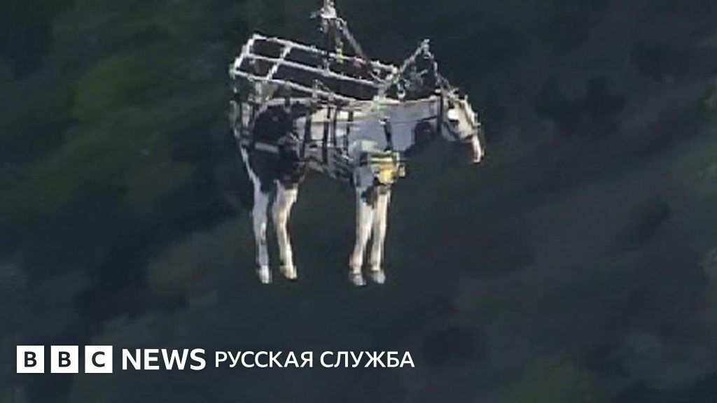 Спасатели надели на лошадь специальную упряжь и доставили к ветеринару по воздуху.