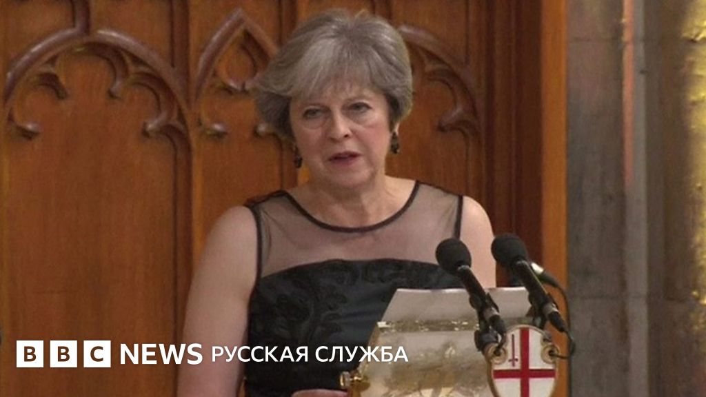 Выступая на банкете лорд-мэра лондонского Сити, премьер-министр сказала, что правительство Владимира Путина пытается "подорвать мировой порядок".